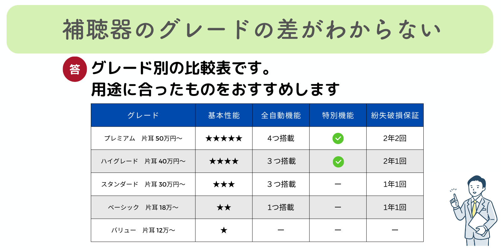 各社とも違いがありますのでお客様に合う補聴器を選択可能です。